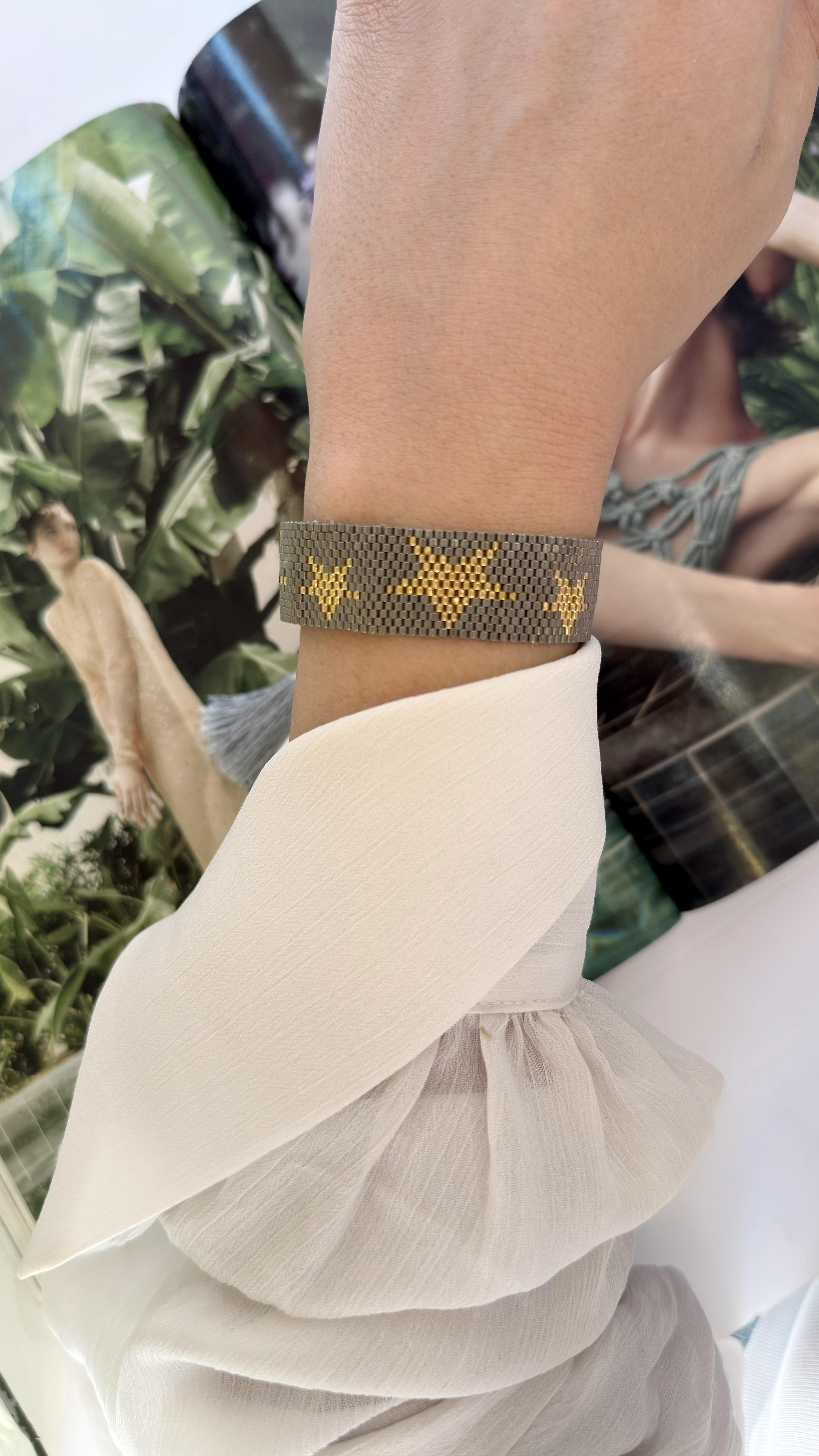 Gri Üzeri Yıldız Gold Detaylı Miyoki İp Bileklik